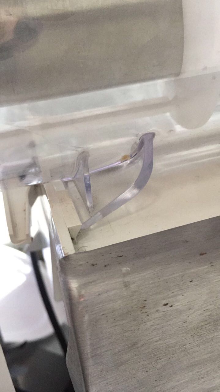 2: Controleer of de transparante bak goed op zijn plaats staat. Deze dient achter de witte houder-klem te zitten. Vervolgens plaatst u de lekbakjes op de juiste plaats aan de voorkant van de machine door deze in de gleuf te schuiven en vast te zetten.